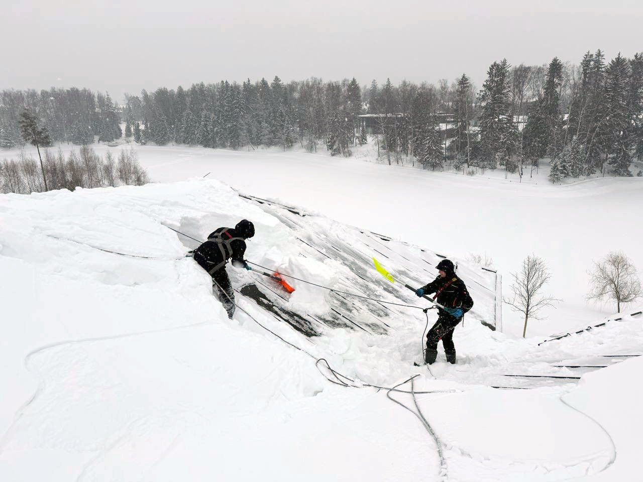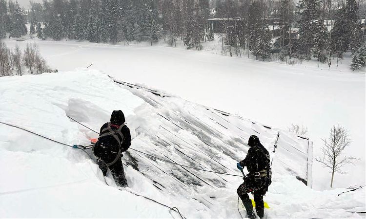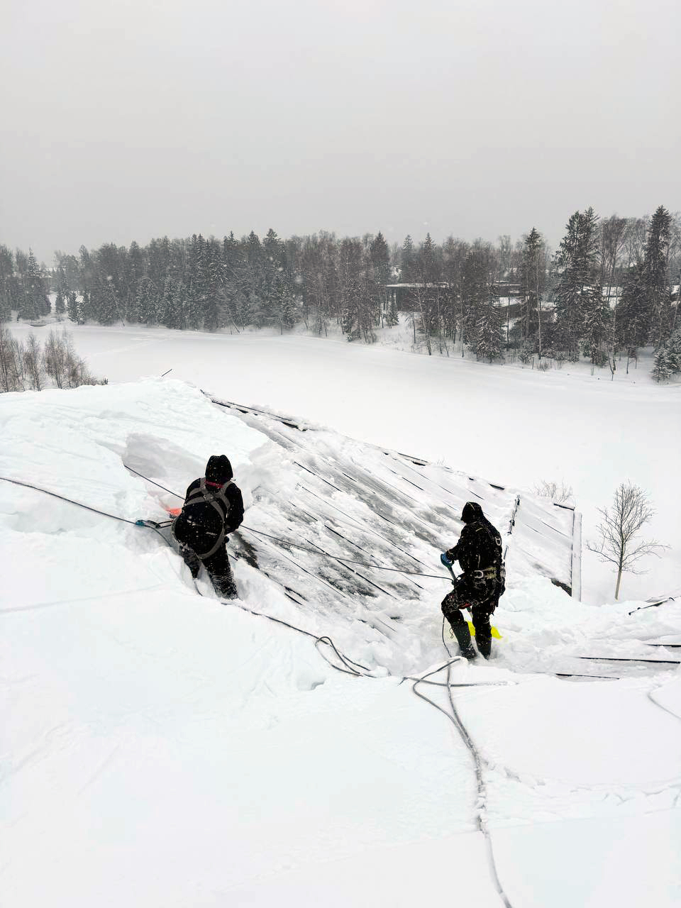 Архитектурно сложная кровля выполнена из листового металла с фальцевым замком. Толщина снежного покрова в ендовах кровли превысила 1 м. Общая площадь — 2000 м2