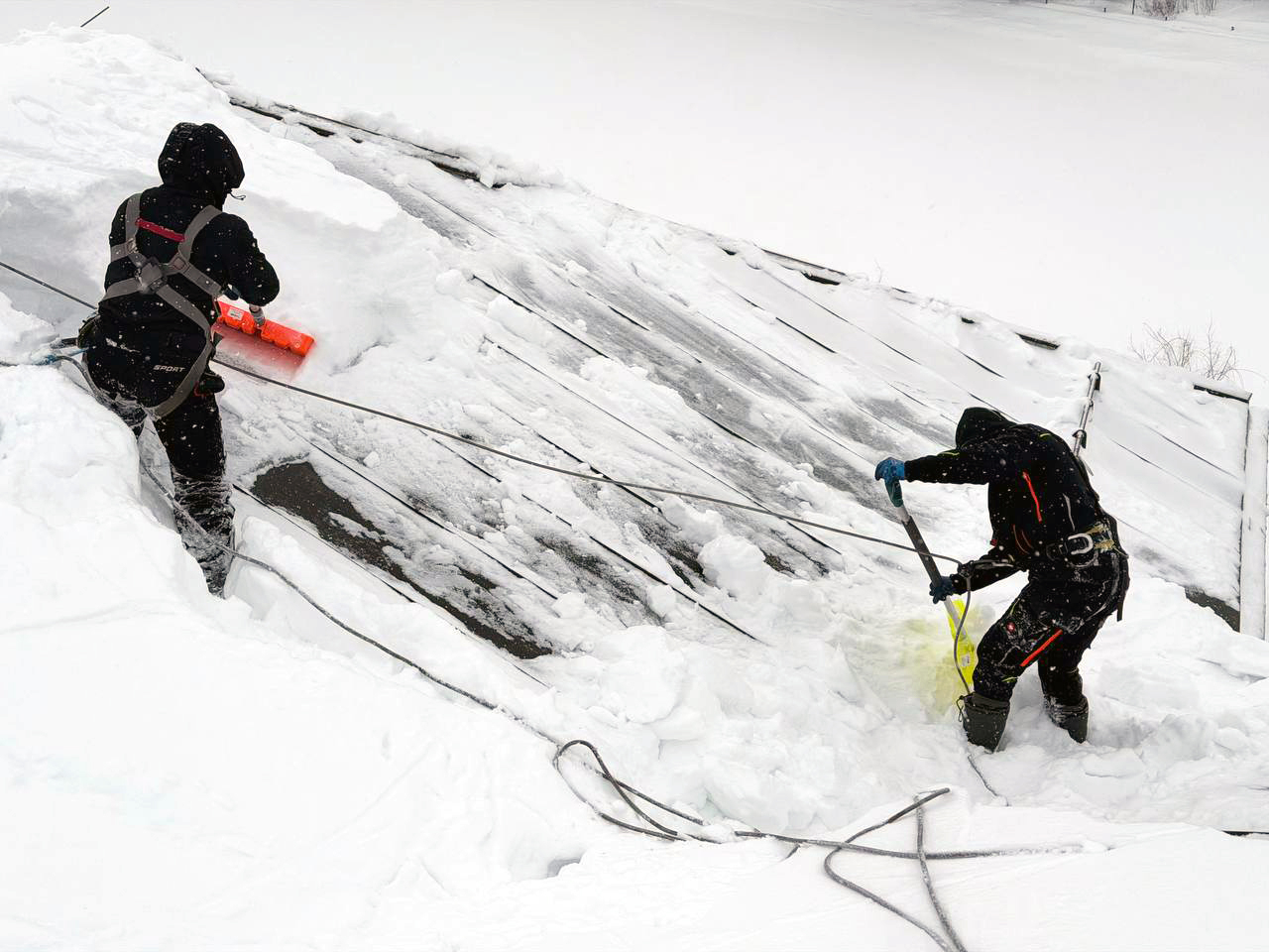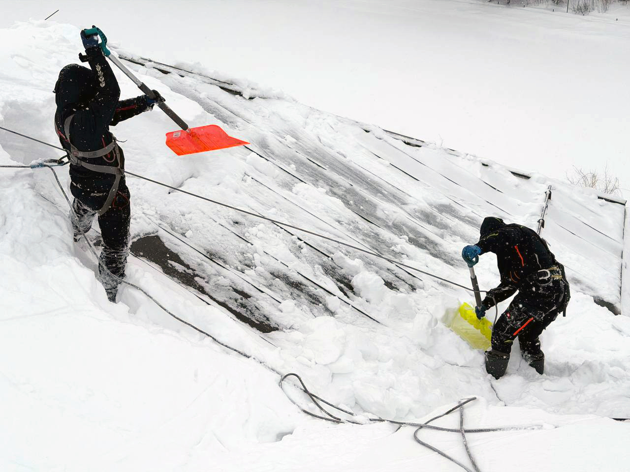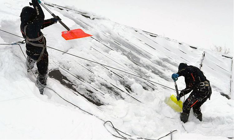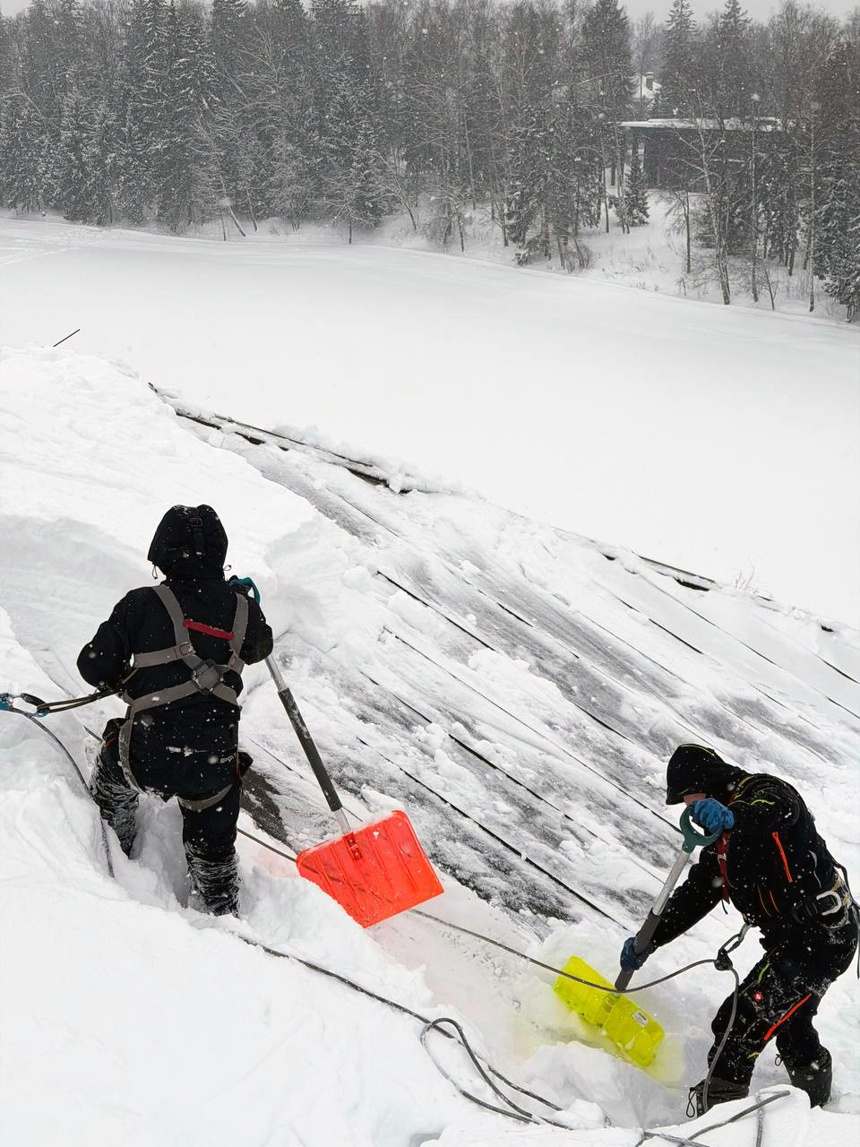 Архитектурно сложная кровля выполнена из листового металла с фальцевым замком. Толщина снежного покрова в ендовах кровли превысила 1 м. Общая площадь — 2000 м2