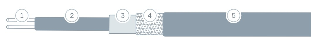 Секции саморегулирующегося нагревательного кабеля, применяются для обогрева кровли, открытых площадок, трубопроводов и резервуаров.
