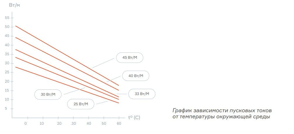 | Мощность тепловыделения | 25, 30, 33, 40, 45, Вт/м | ||||